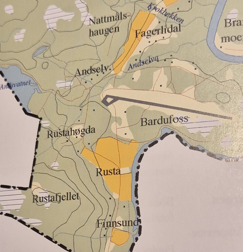 Det vil i praksis si hele dagens Heggelia, samt søndre del av flyplassen.